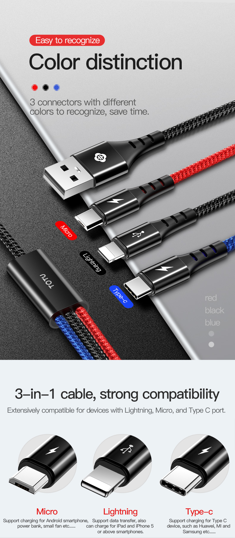 TOTU-3.5A-MICRO+LIGHTNING+TYPE-C-CHARGING-CABLE-1.2M