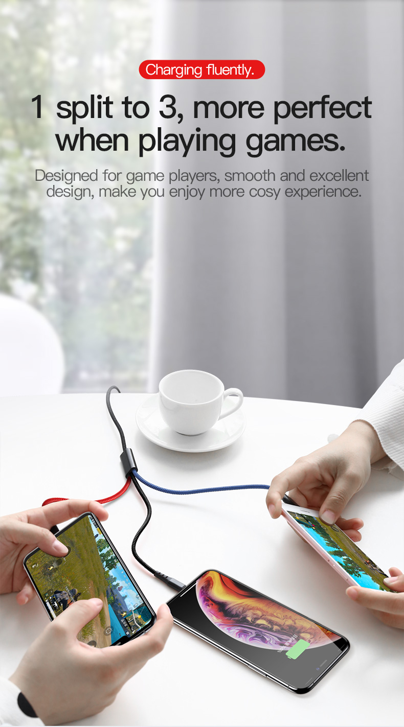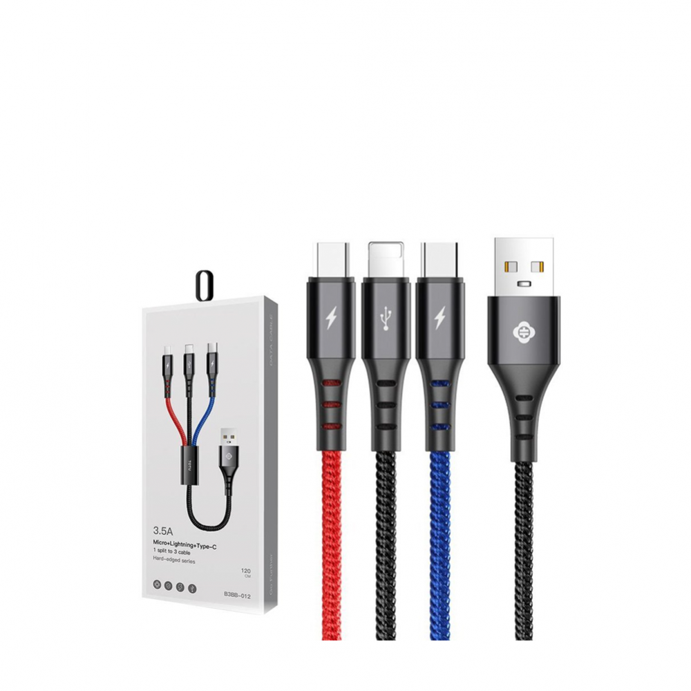 Totu 3.5A Micro+Lightning+Type-C/B3BB-012 Charging Cable 1.2 Meter