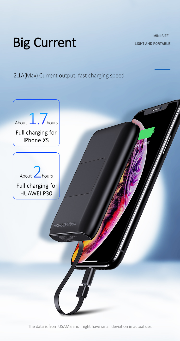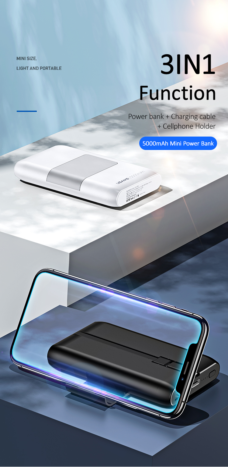 USAMS-2.1A-MINI-POWER-BANK-WITH-PHONE-HOLDER-AND-CABLE-5000MAH-(